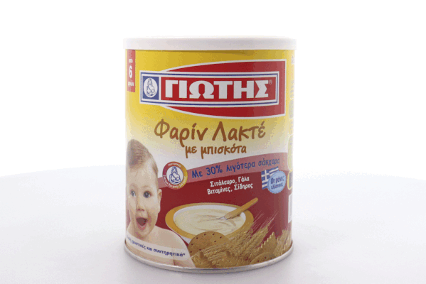 Η Φαρίν Λακτέ με Μπισκότα ΓΙΩΤΗΣ, με σιτάλευρο, γάλα και μπισκότα, είναι κατάλληλη για το μωρό σας από τον 6ο μήνα. Ιδιαίτερα εύγευστη και θρεπτική για ...γερά παιδιά από κούνια!